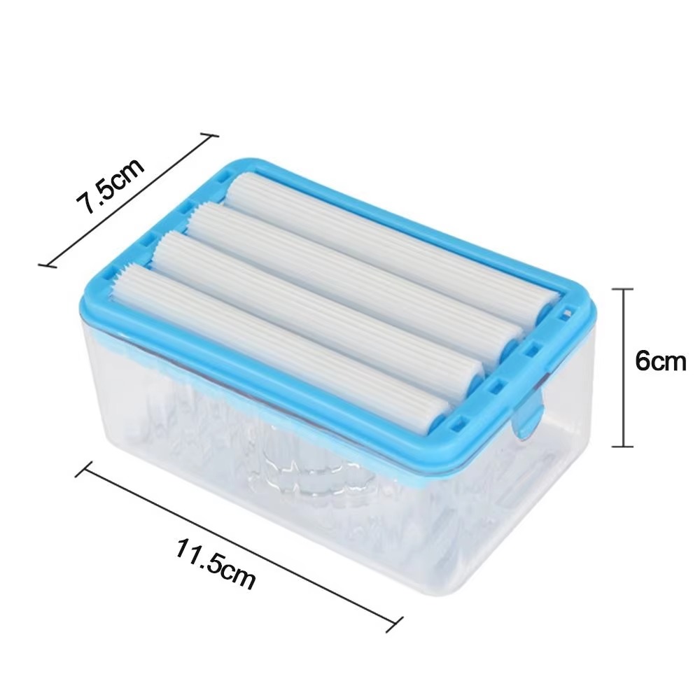 Sæbeskuffen har et enkelt låg, som er let at åbne. Placer sæben mellem svamperullerne, og den vil hurtigt skabe skum. Det hjælper dig med at vaske uden at skulle gnide sæben i hånden.