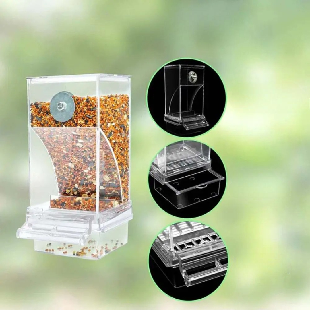 3. Foderautomaten frigiver automatisk mad, når din fugl spiser.