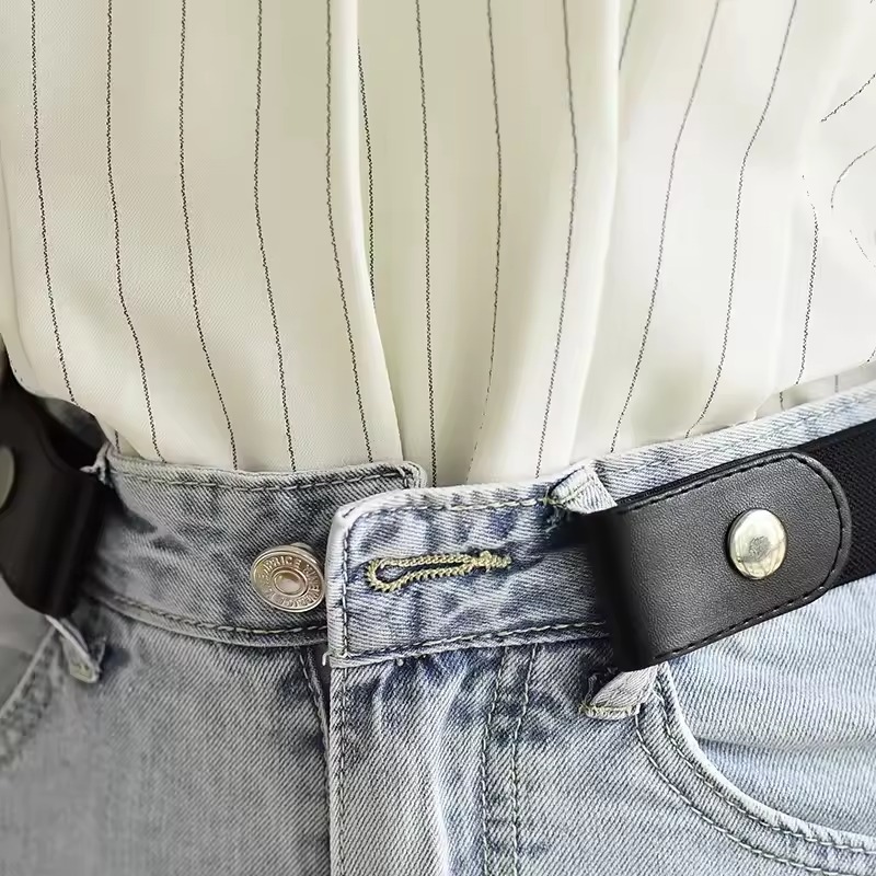 Det spændefri bælte er let at tage på og af. Du behøver ikke at håndtere et metalspænde, hvilket sparer tid. Bare klik det fast i siderne, så er du klar til at gå.
