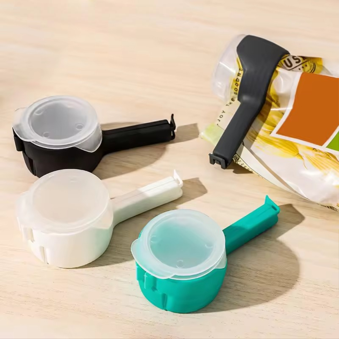 Forsegl, opbevar og hæld nemt dine madvarer op med denne smarte poseclips med indbygget dyse. 🥫