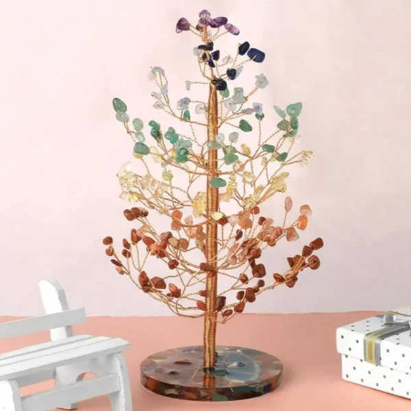 Dette chakratræ er mere end bare indretning. Det er et feng shui-pengetræ, der kan hjælpe med at bringe overflod, kærlighed og fred. Hvert krystalblad repræsenterer balance og styrke. Placer det i din stue, på dit skrivebord eller i dit meditationsrum for at løfte energien og forskønne dine omgivelser. Det er lille, smukt og fuldt af formål.