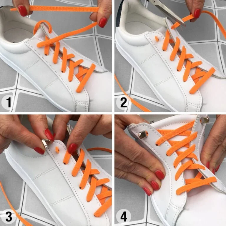 - Sæt de elastiske snørebånd i dine sko, som du ville gøre med normale snørebånd.