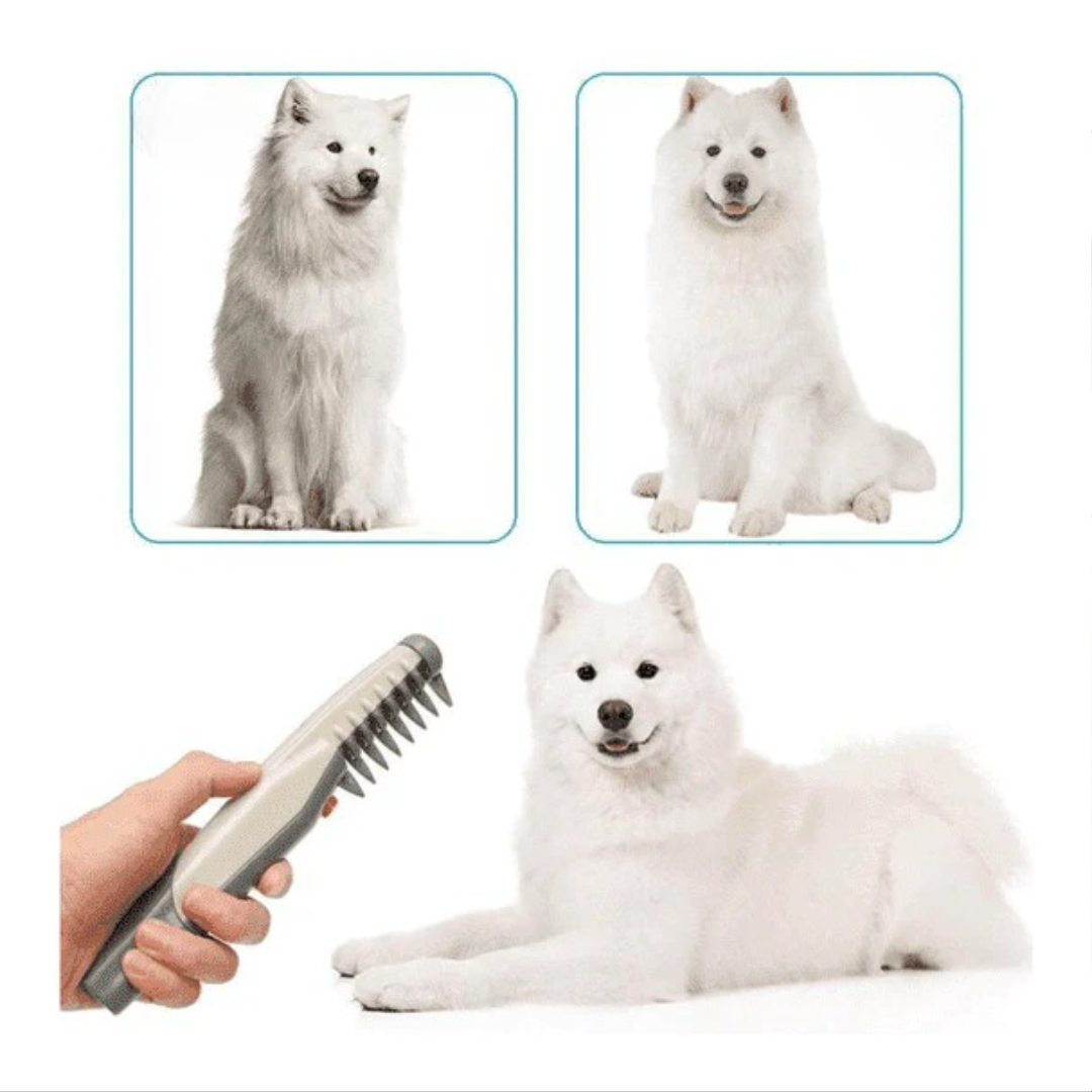 Denne elektriske kam til kæledyr gør pelsplejen nem, hurtig og behagelig for din firbenede ven. Den fjerner løse hår, løsner knuder og glatter pelsen – alt sammen skånsomt mod dit kæledyrs hud. Perfekt til både daglig børstning og håndtering af hårde måtter.
