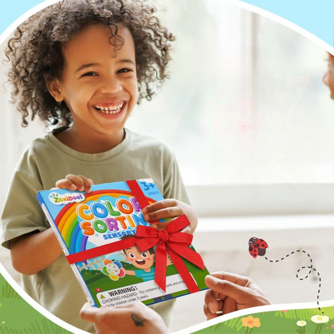 Dette farvesorterende sanselegetøj opfordrer småbørn til at sortere farverige bolde i matchende sektioner, hvilket forbedrer hånd-øje-koordination og tidlige kognitive færdigheder. Det er designet med Montessori-principper og gør læring til sjov, praktisk leg, der er sikker og perfekt til voksende sind.