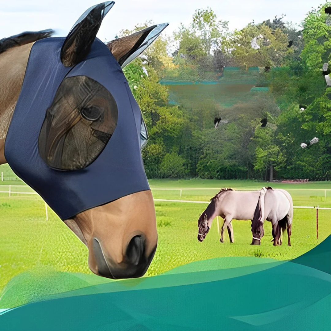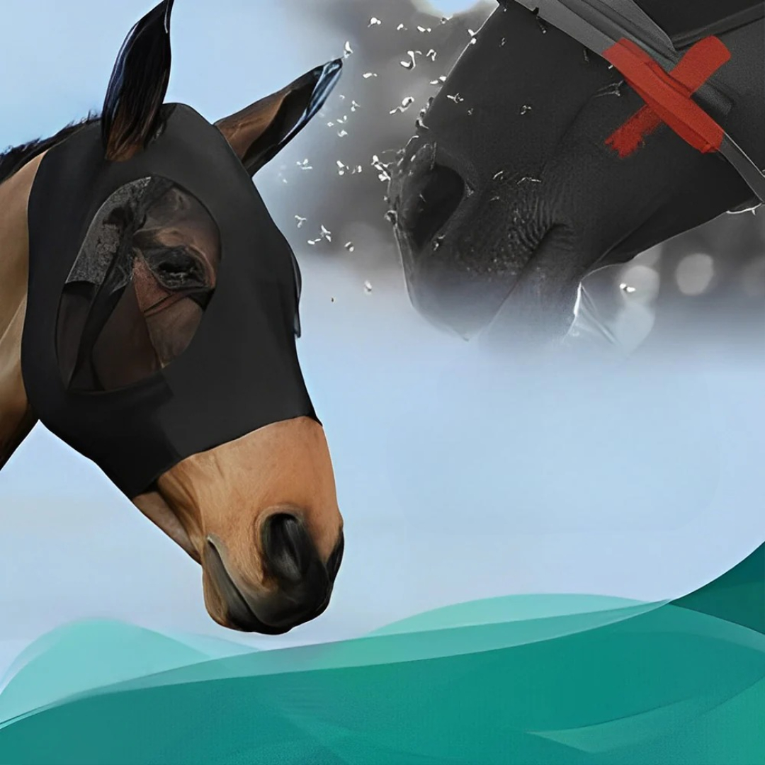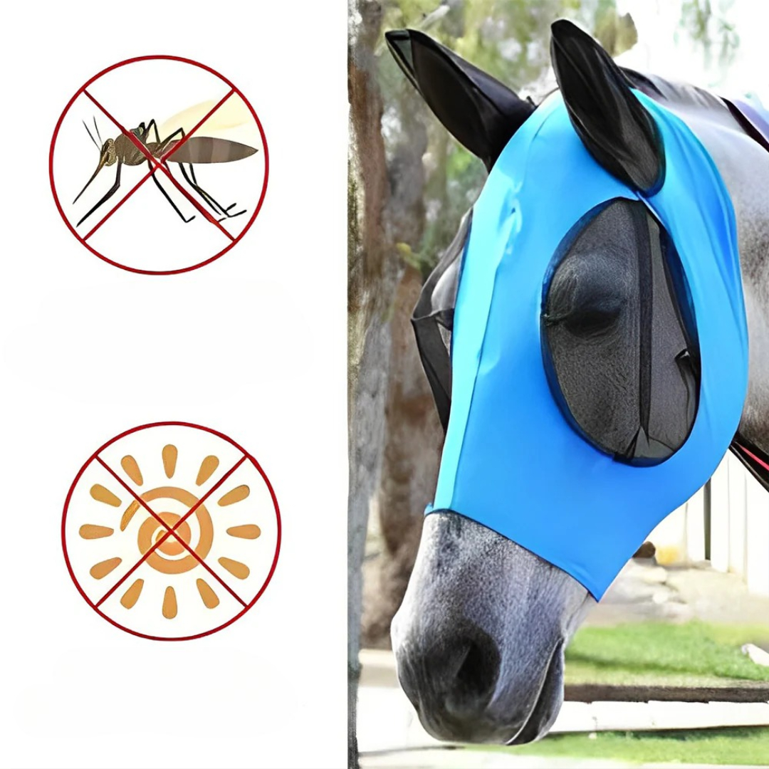Den lufttætte fluemaske giver fuld beskyttelse mod fluer, støv og UV-stråler. Dens bløde, åndbare design holder din hest rolig, komfortabel og fokuseret – uanset om den er i stalden eller på græs.