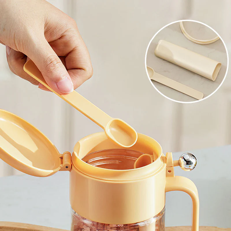 Denne fugtbestandige krydderikrukke med ske gør madlavningen hurtigere og renere ved at give dig hurtig adgang til dine krydderier med én hånd. Det lufttætte design holder krydderierne tørre, mens den brede åbning og den indbyggede ske gør det nemt at fylde og øse op. Krydderidåsen i gennemsigtigt glas hjælper med at forhindre fugt og sammenklumpning, så krydderierne holder sig friske i længere tid. Den store kapacitet på 400 ml og den brede åbning gør den perfekt til daglig madlavning, bagning og krydring uden rod eller stress.