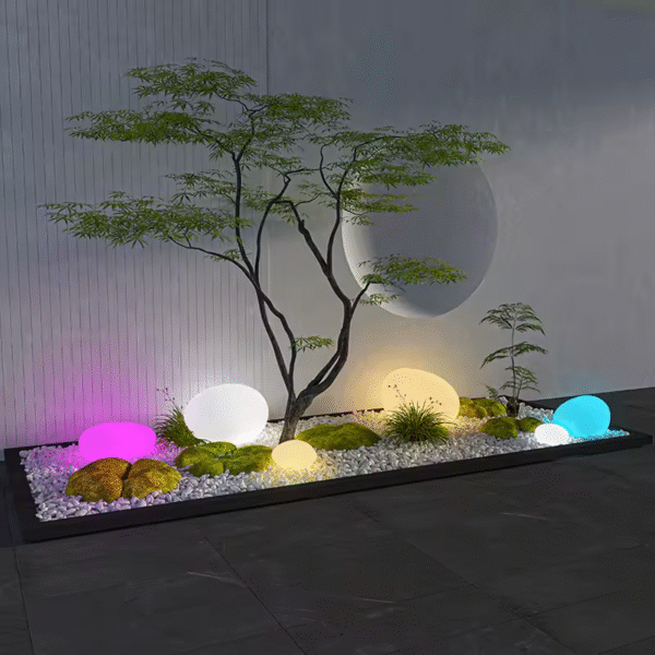 Denne havelampe ligner en glødende sten og tilføjer magi til ethvert rum. Brug den i din have, til fester eller i dit hjem. Den er vandtæt, holdbar og nem at bruge. Oplad den bare i solen eller med usb-kablet. Den er perfekt til fødselsdage, bryllupper, ferier eller afslappende nætter udenfor.
