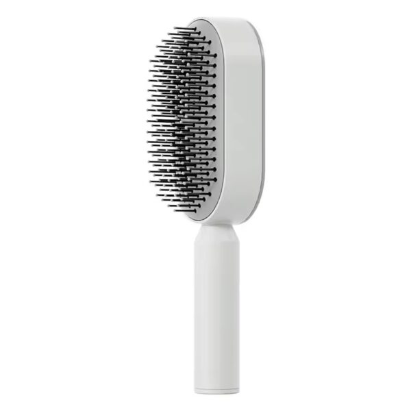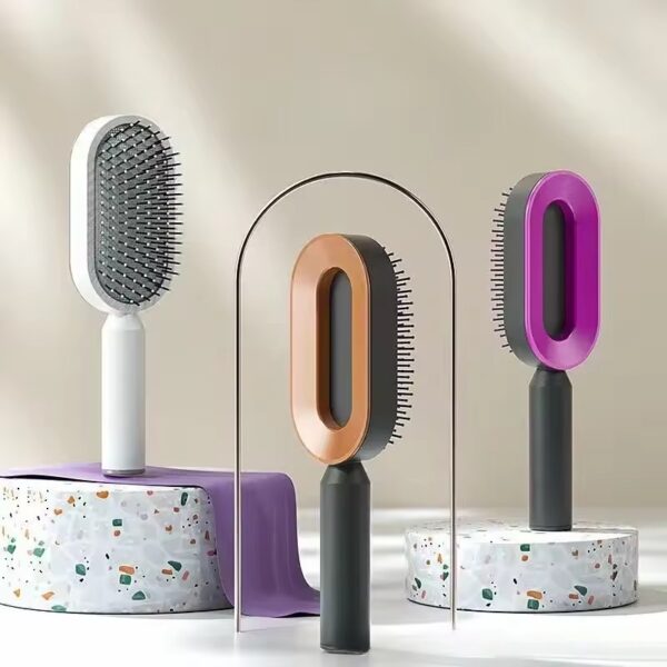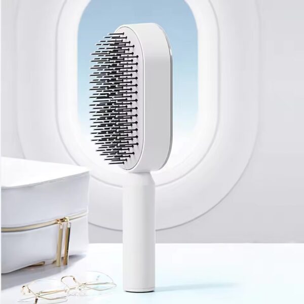 Hårbørsten har et luftpude-design, der reducerer trykket på hovedbunden. Den tilpasser sig hårets naturlige kurver og gør børstningen jævn og skånsom. Det hjælper med at forhindre trækninger og gør hårplejen mere behagelig.