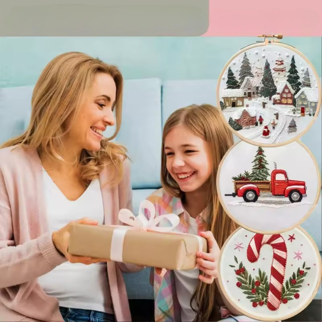 • 1x julebroderisæt (inkluderer broderiklud, tråde, nål og ramme)