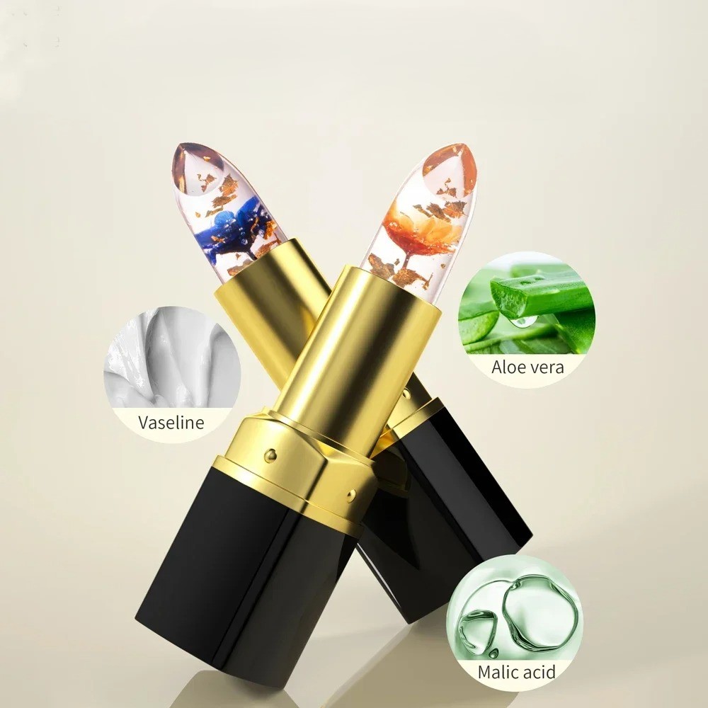 Denne enestående læbestift skifter farve med din kropstemperatur. Den holder dine læber fugtige, glatte og glødende på en naturlig måde – alt sammen i et smukt geléblomstdesign!