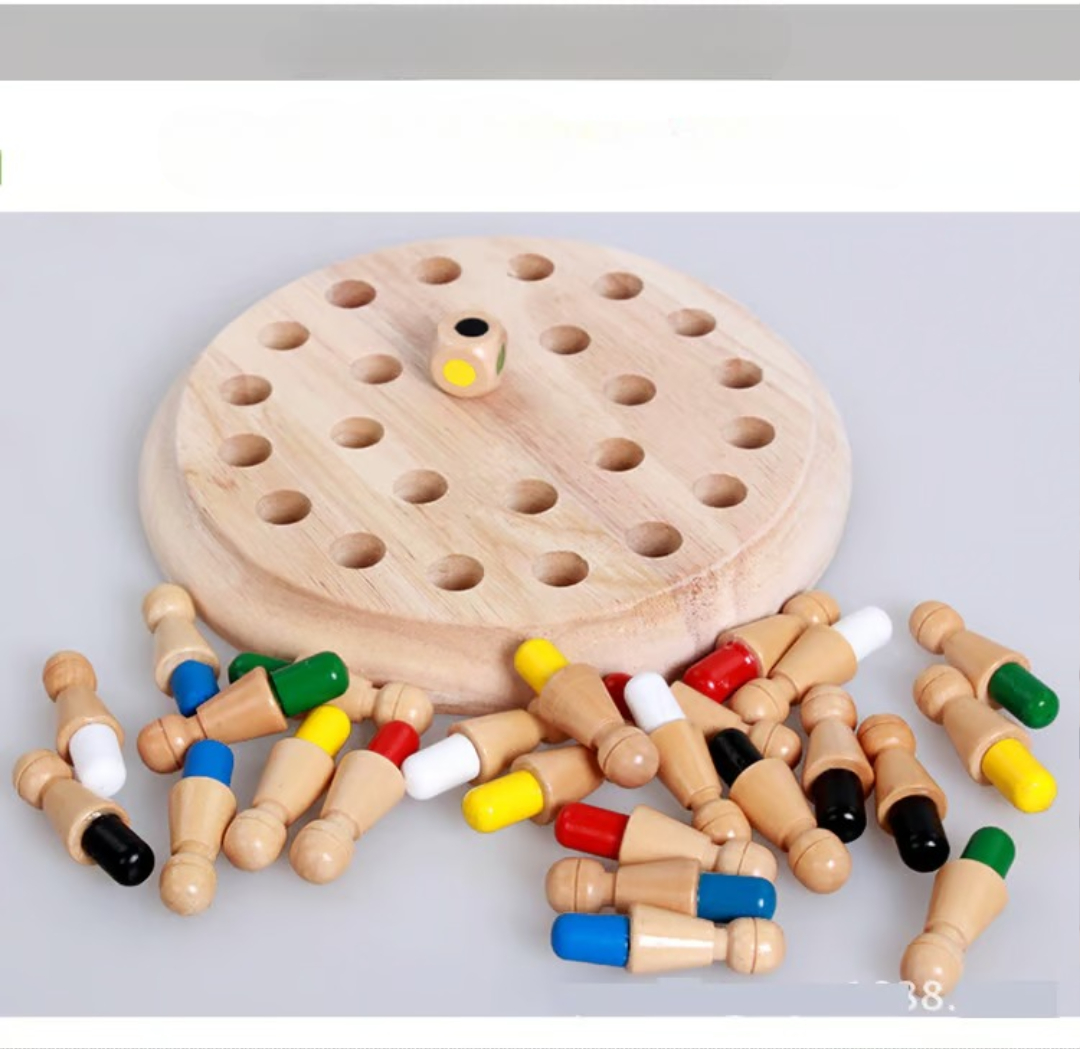 Dette hukommelsesskakbræt i træ er et Montessori-inspireret pædagogisk legetøj, der er designet til at træne hukommelse, fokus og hånd-øje-koordination – alt sammen mens man har det sjovt. Det er lavet af miljøvenligt træ af høj kvalitet og hjælper både børn og voksne med at forbedre koncentration og mental smidighed gennem farverigt og engagerende spil.