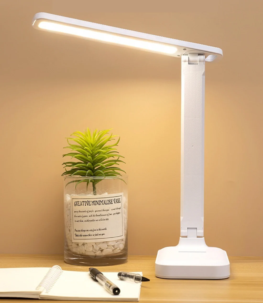 Denne smarte skrivebordslampe har tre lysstyrkeniveauer, så du kan vælge den ideelle belysning til at læse, studere eller arbejde om natten. Dens genopladelige design betyder, at du kan bruge den overalt – med eller uden et USB-kabel. Den er kompakt, let og moderne og er den perfekte belysningspartner til dit skrivebord, soveværelse eller kontor.