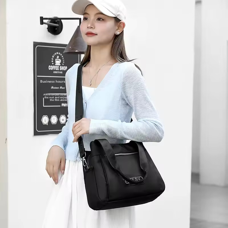 Denne lette skuldertaske er bygget til travle dage og ubesværet mode. Med flere lynlåslommer, vandafvisende stof og en justerbar rem er den den perfekte følgesvend til ærinder, rejser eller hverdagsbrug.