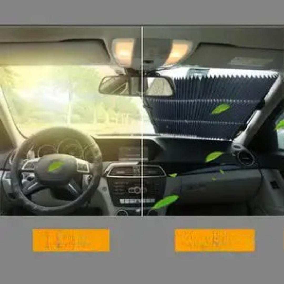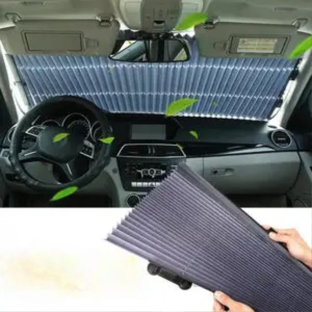 🚗Hold din bil kølig og beskyttet med denne brugervenlige udtrækkelige solskærm!