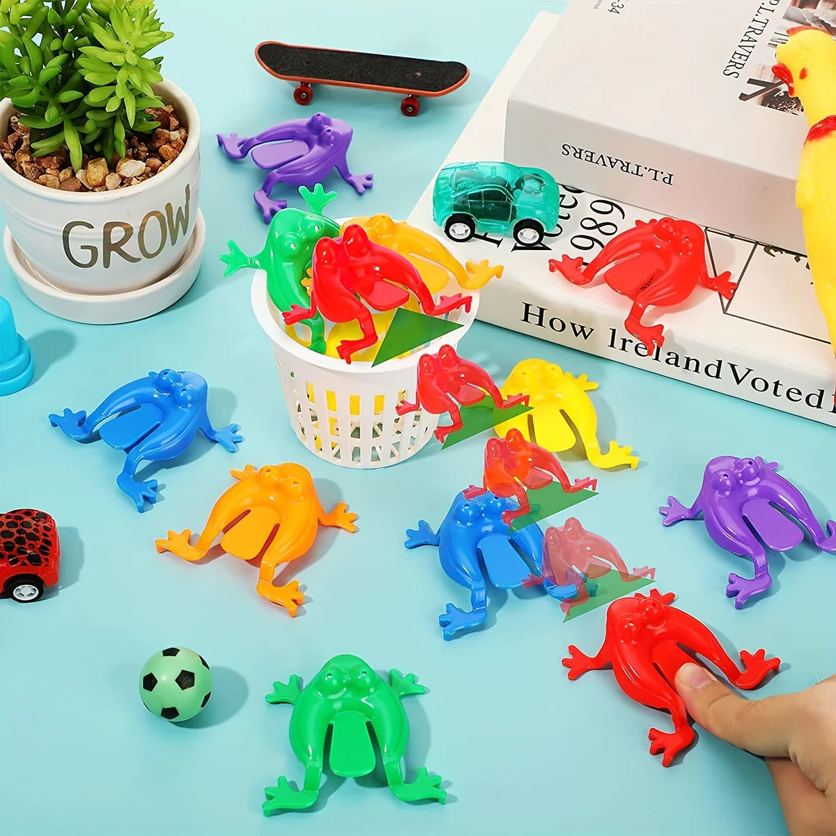 Bring latter og spænding til familietiden med dette farverige spil med hoppende frøer! Børn elsker at vende frøerne ned i kurven, og det er perfekt til fester, legeaftaler eller sjove aftener derhjemme.
