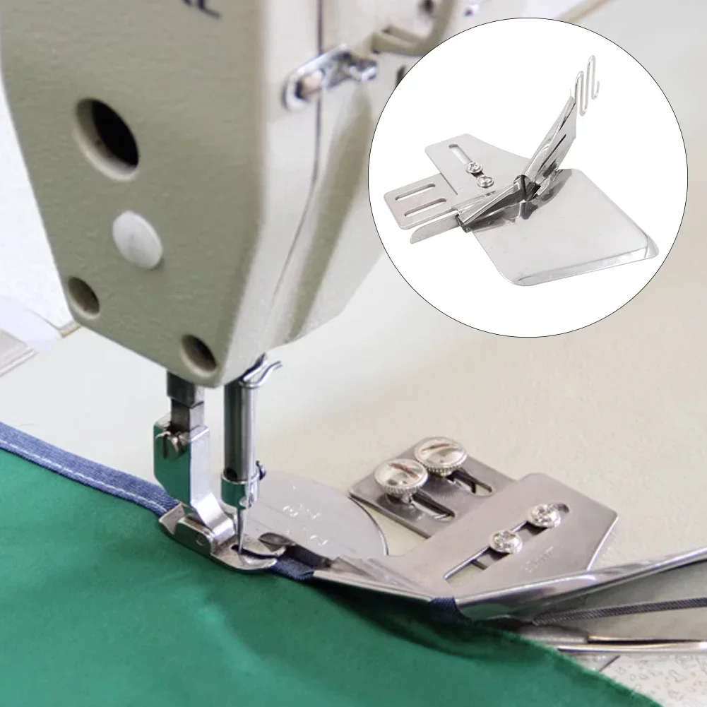 Denne symaskinefals hjælper med at folde og sy stofkanter jævnt for en pæn finish. Den styrer stoffet automatisk, hvilket sparer tid og kræfter, samtidig med at den leverer ensartede resultater til hjemme- eller flade symaskiner.