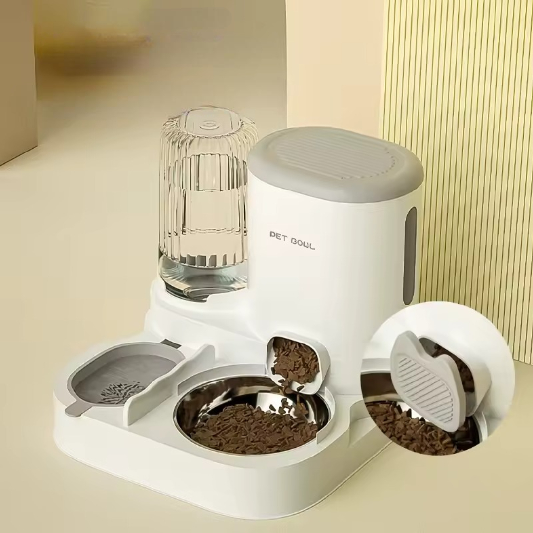 Denne foderautomat med vanddispenser genopfylder automatisk foder og vand ved hjælp af tyngdekraften, så din kat eller hund altid har adgang til frisk mad og rent vand. Det dobbelte tankdesign holder mad og vand adskilt, samtidig med at der opretholdes et pænt, hygiejnisk fodringsområde. Denne foderautomat er perfekt til travle kæledyrsejere, da den reducerer antallet af daglige opfyldninger og hjælper med at opretholde en ensartet fodringsrutine. Den synlige skala giver dig et hurtigt overblik over niveauerne, mens anti-skimmel-teknologi holder foder og vand frisk i længere tid.