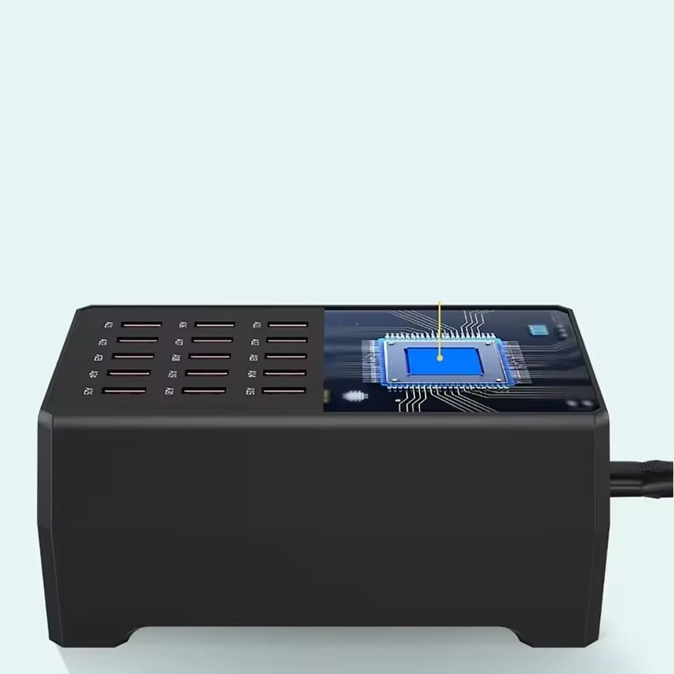 150W USB-opladningsstationen leverer kraftig, sikker og effektiv opladning til flere enheder – alt sammen i én kompakt enhed. Denne oplader er perfekt til hjem, kontorer, skoler eller fællesrum og giver strøm til smartphones, tablets og meget mere uden rod. Med intelligent opladning, slankt design og certificeret sikkerhed er det den ideelle løsning til at holde alle dine enheder fuldt strømforsynede og organiserede.
