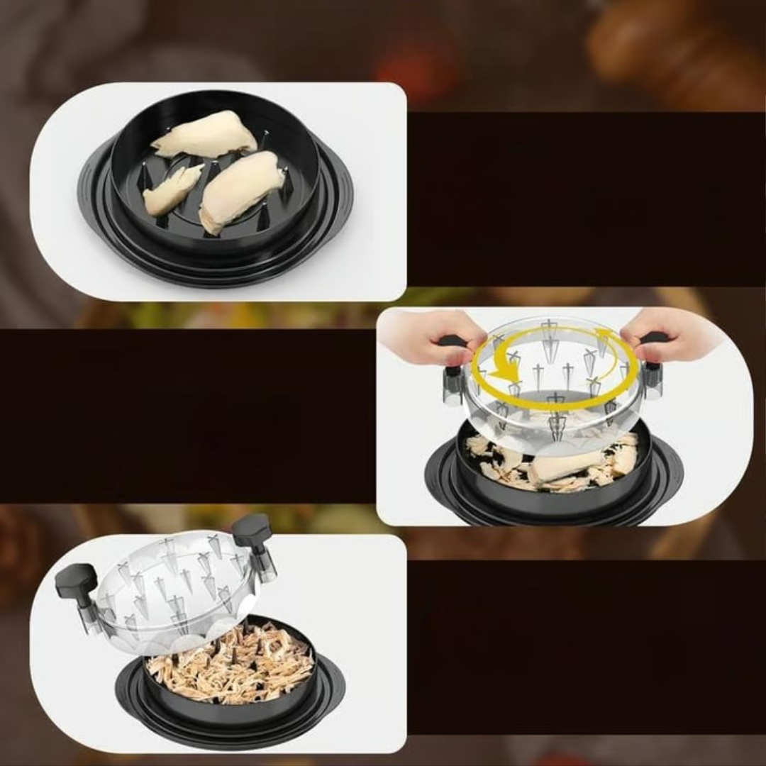 ⚡ Hurtig strimling – Drej for at strimle kogt kylling, svinekød, oksekød og grøntsager på få sekunder.
