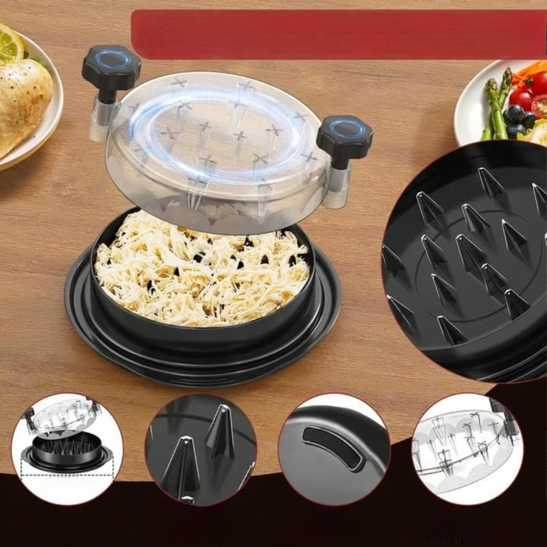 Denne kyllingestrimler bruger indbyggede strimletænder og en simpel drejebevægelse til at forvandle kogt kød til perfekte strimler. Det sparer tid, reducerer belastningen af hænderne og hjælper dig med at tilberede tacos, sandwiches, salater, grillretter og endda dyrefoder med lethed. Ideel til hjemmekokke, måltidsforberedere, grillelskere og fitnessentusiaster.
