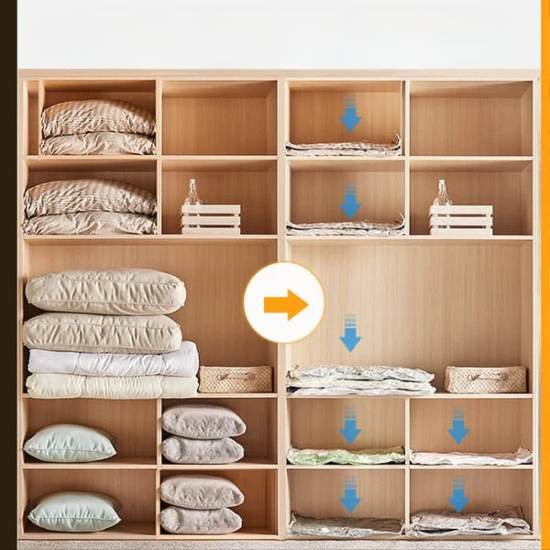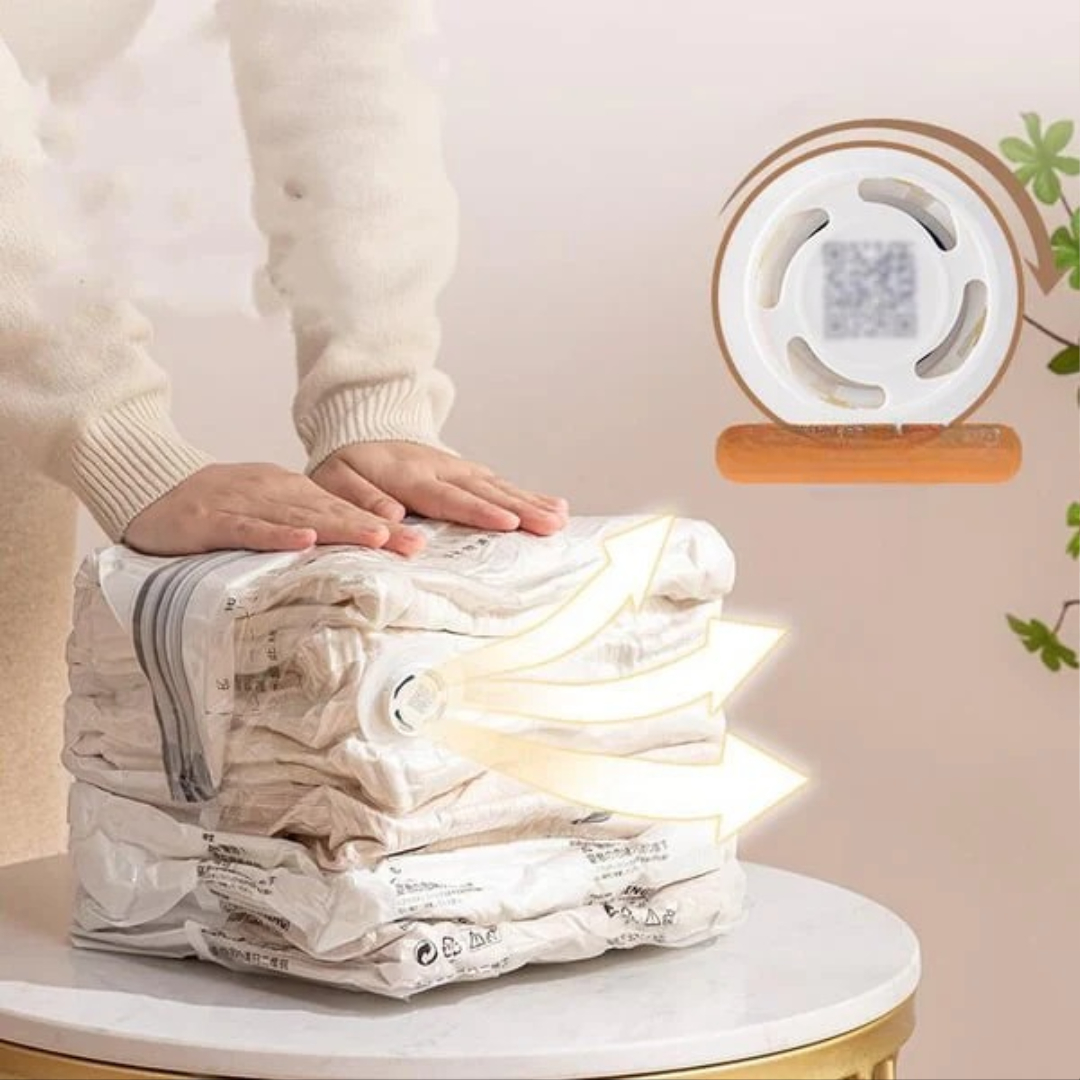 Denne vakuumopbevaringspose hjælper dig med at spare op til 75 % plads med det samme. Bare forsegl, sæt vakuumpumpen på, og tryk på knappen – ingen manuel rulning eller store opbevaringskasser er nødvendige. Perfekt til rejser, sæsonbestemt tøj eller til at rydde op i dit hjem.