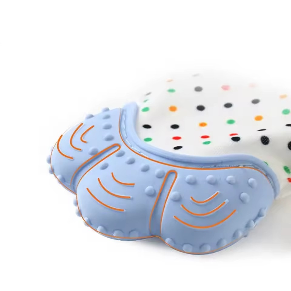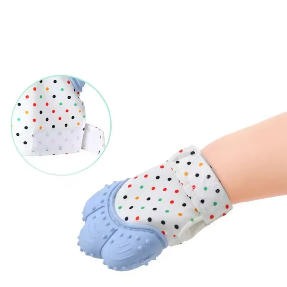 Bideringsvanten er en sikker og skånsom løsning til babyer i den tidlige fase af tandfrembruddet. Den er designet med flere strukturerede silikoneoverflader og en sjov knitrelyd, som underholder babyen, mens den lindrer ubehag i tandkødet – uden behov for at holde i en bidering.