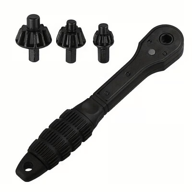 This 2-in-1 chuck ratchet wrench replaces bulky drill keys and makes tightening or loosening drill chucks effortless. With a reversible ratchet system and interchangeable chuck heads, you can switch bits in secondsβ€”perfect for any DIYer or professional.