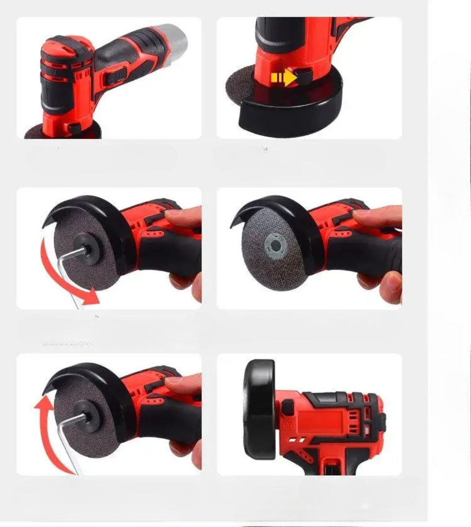 This powerful cordless angle grinder is built for serious work. Featuring a high-strength stainless steel gear, efficient heat dissipation, and a brush motor system, it delivers pro-level performance with total freedom of movement. Perfect for metal, wood, tiles, and more.