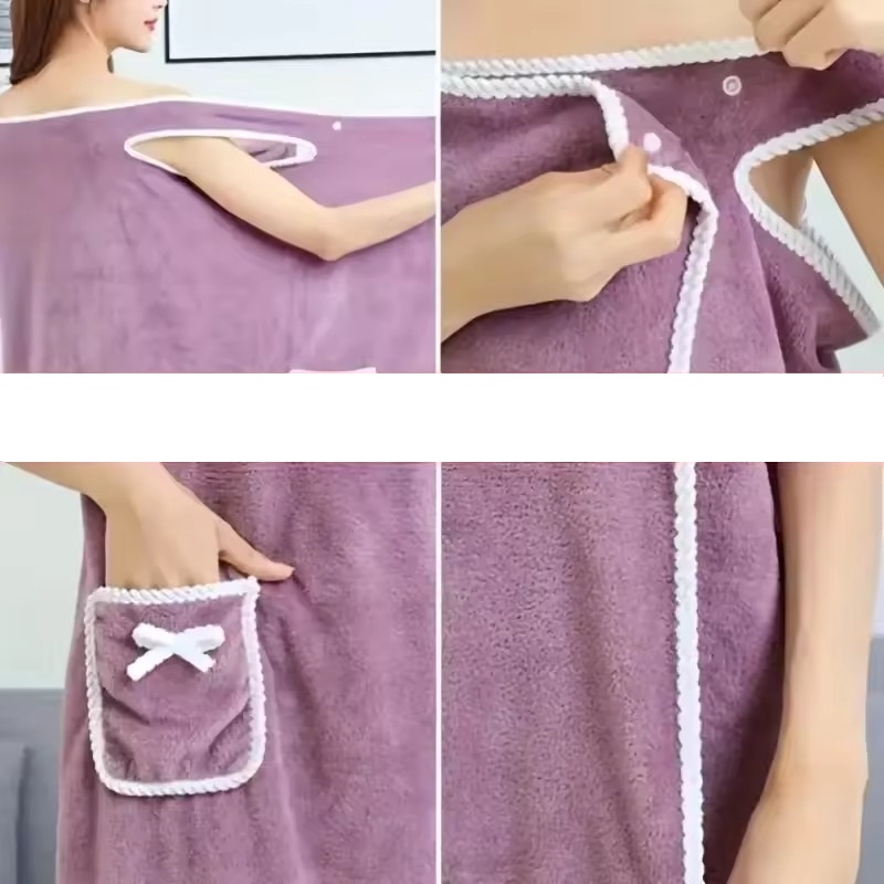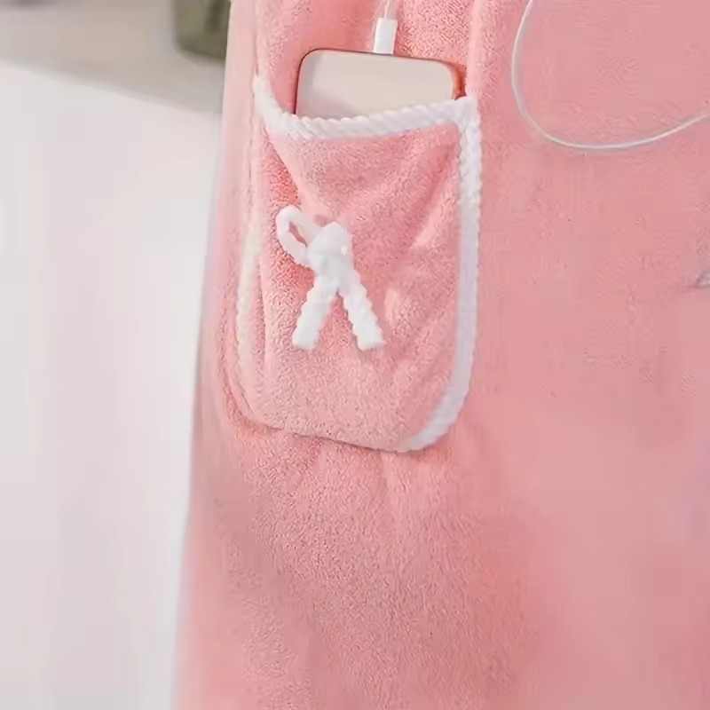 Enjoy the luxury of a spa at home with this wearable bath towel wrapβcombining softness, comfort, and cute style for a cozy post-shower experience. Designed like a robe but worn like a towel, this adjustable wrap features a playful bow, a handy pocket, and a secure fit for all body types. Whether you’re at home or on the go, itβs perfect for drying off and lounging in comfort.