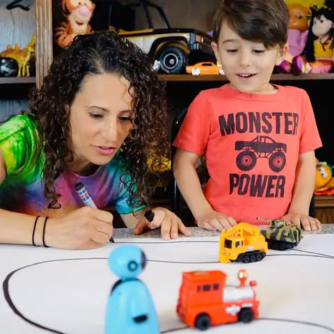 RaceTrace™ brings your child’s drawings to life and turns play into learning. Perfect for children ages 4 and up, but younger kids can enjoy it too. It uses 4 LR44 button batteries (included) that last for weeks. The package includes 1 robot, 1 pen, 1 sheet of paper, and 1 manual.