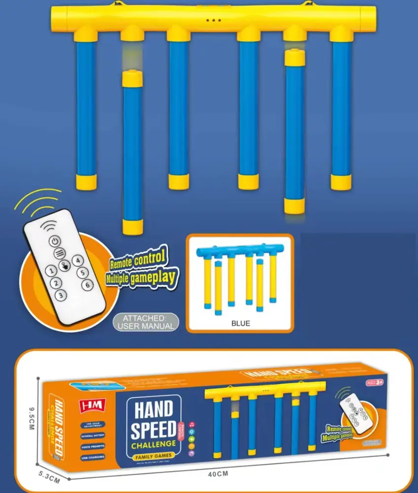 Hang the sticks on the hooks. Choose a speed level. The sticks will drop randomly. Try to catch them before they hit the ground. Adjust the speed to make it easier or harder.