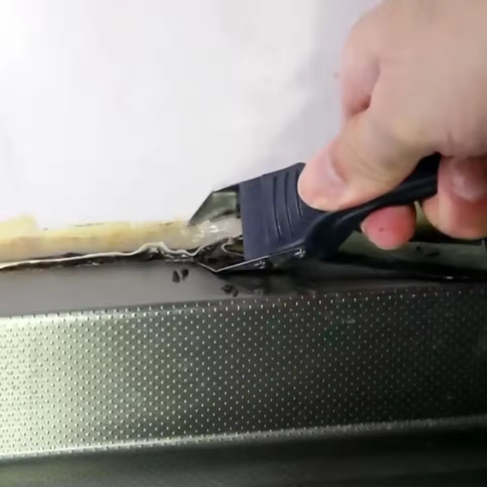 The silicone spatula is designed to remove old caulk quickly and easily. Its sharp edge helps scrape away dried sealant without damaging surfaces. This makes it perfect for bathroom, kitchen, and window repairs. A great tool for both home and professional use.