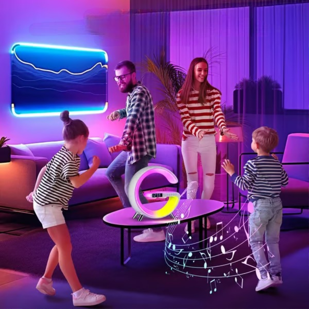 This smart mood lamp combines a fast wireless charger, a Bluetooth speaker, and a multi-mode ambient lamp into a compact and modern bedside essential. It adds style, comfort, and convenience to any room while making your daily routine easier.