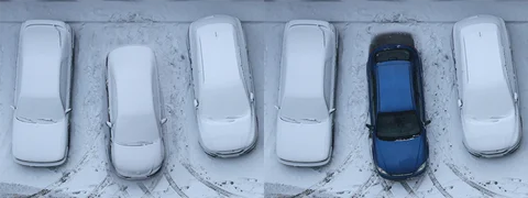 Start from the top of your windshield and scrape down to remove snow or ice.