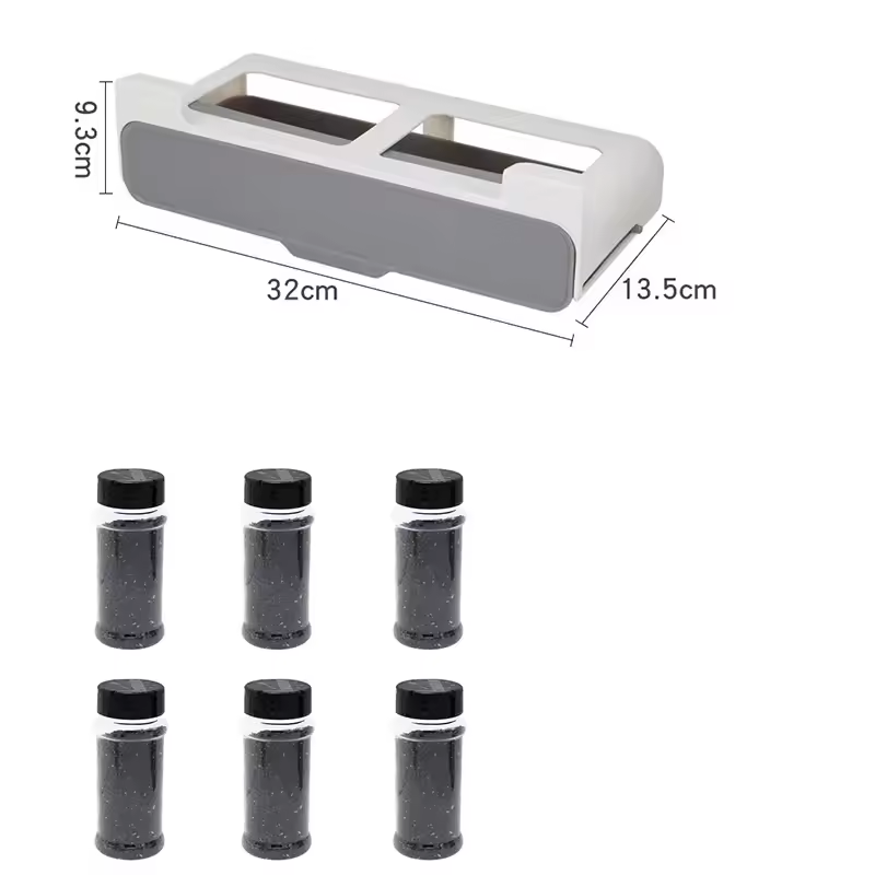 This spice organizer slides under your shelf to store spices and small kitchen items neatly. It helps you free up drawer and counter space while keeping everything easy to reach and well organized. A simple and space-saving solution for a cleaner, more organized kitchen.