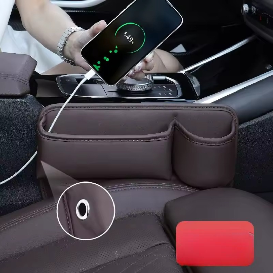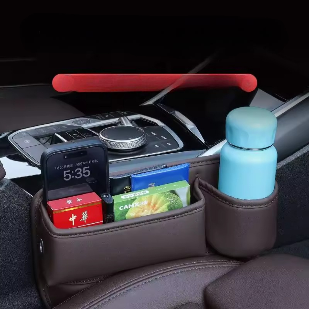 Keep your essentials organized and always within reach with this sleek car seat gap storage box. Crafted from premium Italian leather, it adds luxury and function to any car interior โ€” while preventing small items from falling into hard-to-reach gaps. Ideal for phones, wallets, cards, coins, keys, drinks, and more.