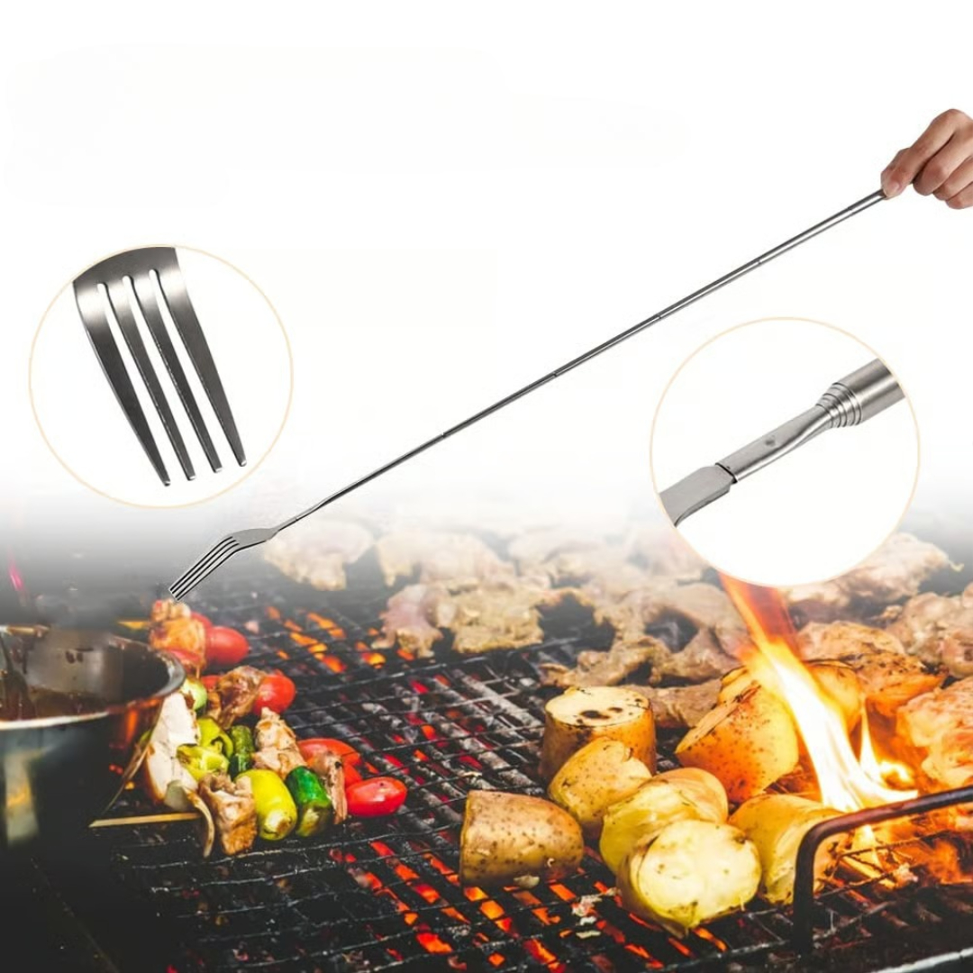 This telescopic fork helps you grab, roast, or serve food without getting too close to heat. Compact, strong, and adjustable, itβs perfect for grilling, camping, picnics, and everyday meals at home.
