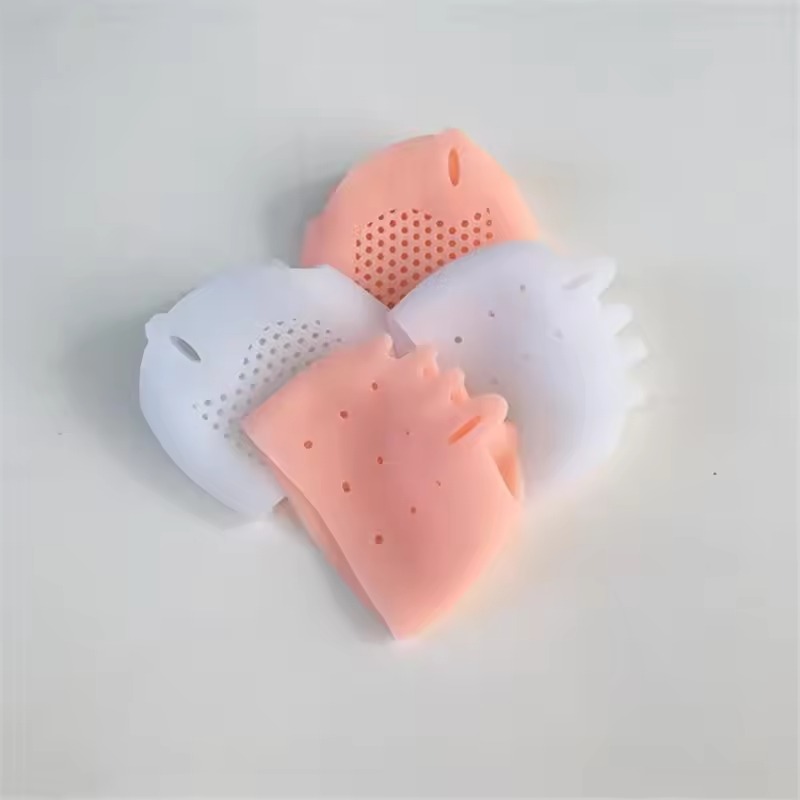 The toe separator is made of soft silicone, offering gentle cushioning to reduce foot pain and pressure. It helps relieve discomfort caused by bunions, bent toes, or tight shoes, allowing for a more comfortable walking experience.