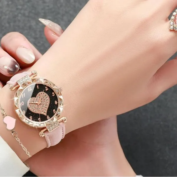 This fashionable watch and bracelet set adds a classy touch to your outfit. It’s perfect for work, dates, or special events. With a slim fit and sleek look, it’s both practical and pretty—making it a favorite for style lovers.