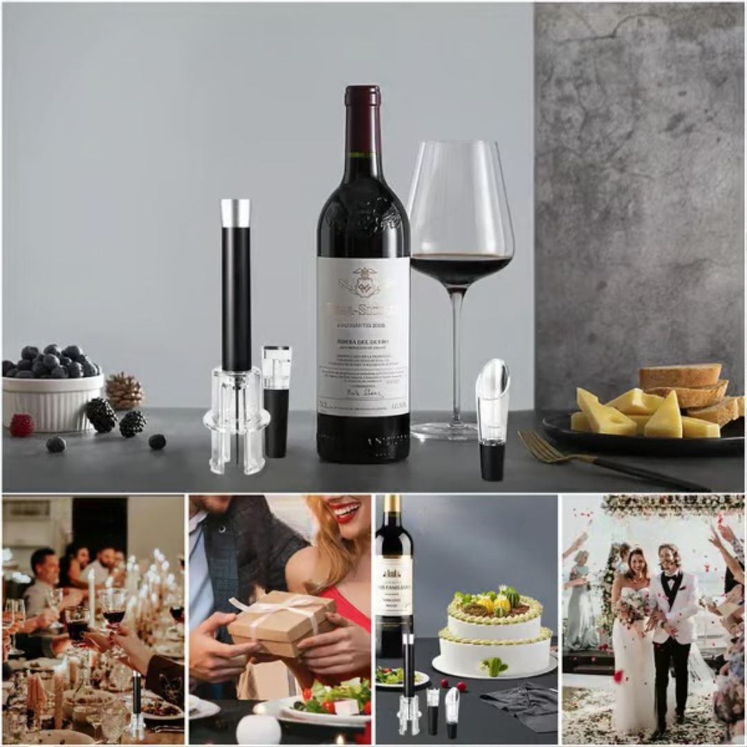 🎁 Complete wine set – Includes opener, foil cutter, stopper, and aerator.
